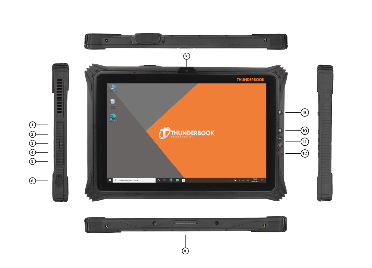 La W128 dispone de puertos versátiles (USB-A, USB-C, Mini HDMI, microSD y audio jack), además de la opción de configurarlos como RJ-45, RS-232 o USB 2.0. Una flexibilidad total.