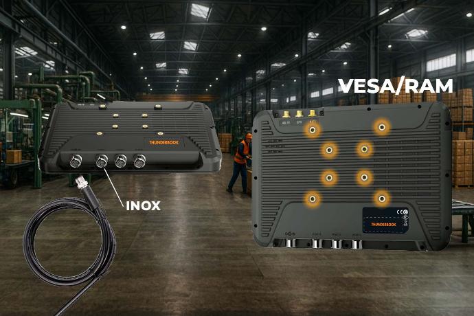 Su montaje estándar VESA 100 / RAM facilita la integración en vehículos o estructuras industriales, simplificando la
